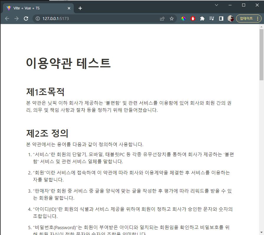 아래 실제 노션 이용약관 페이지에서 3조까지만 복사해와서 이용약관 페이지를 테스트로 만들었다.